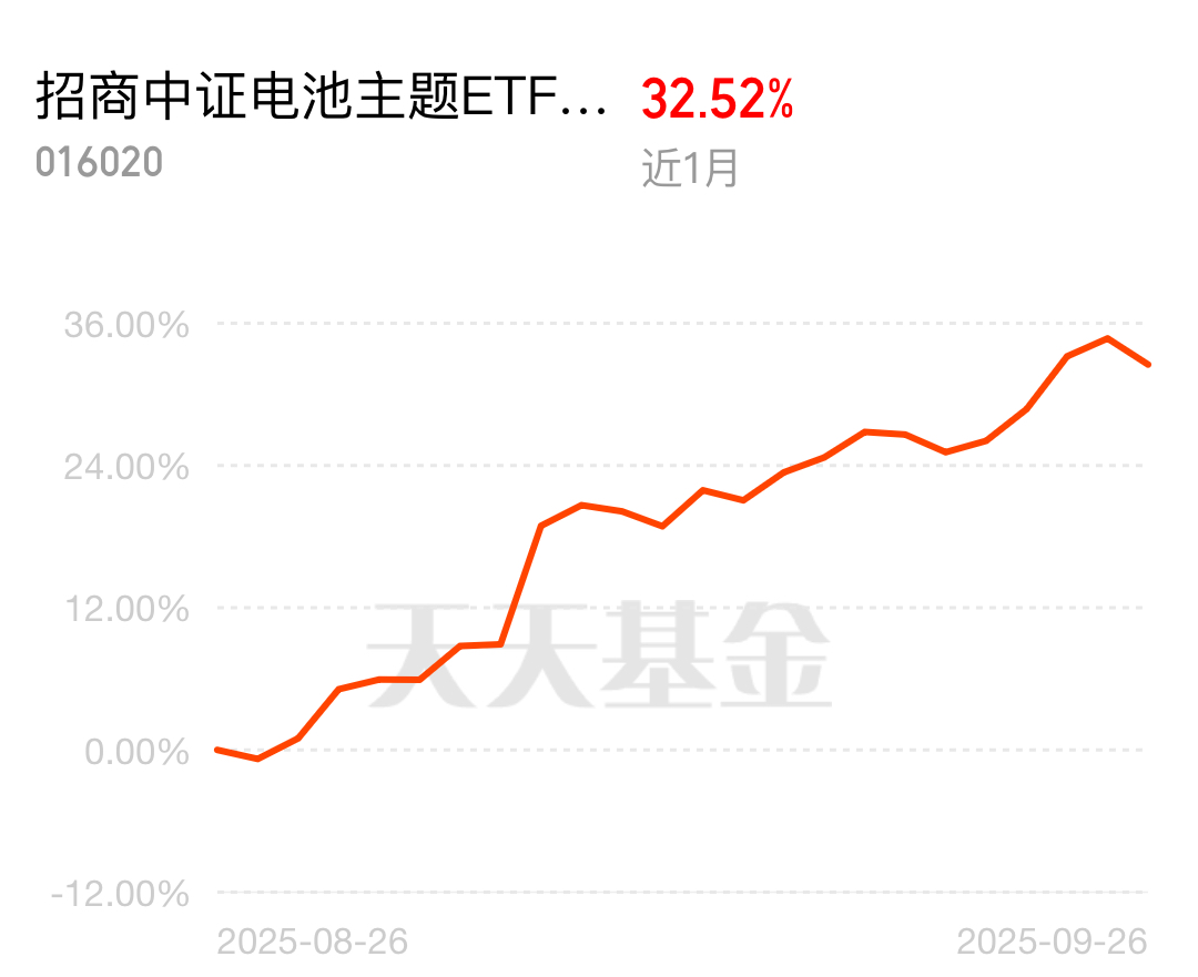 现在买电池基金是顺势而为,行情在往上走。招商中证电池主题ETF联接C近1个月32