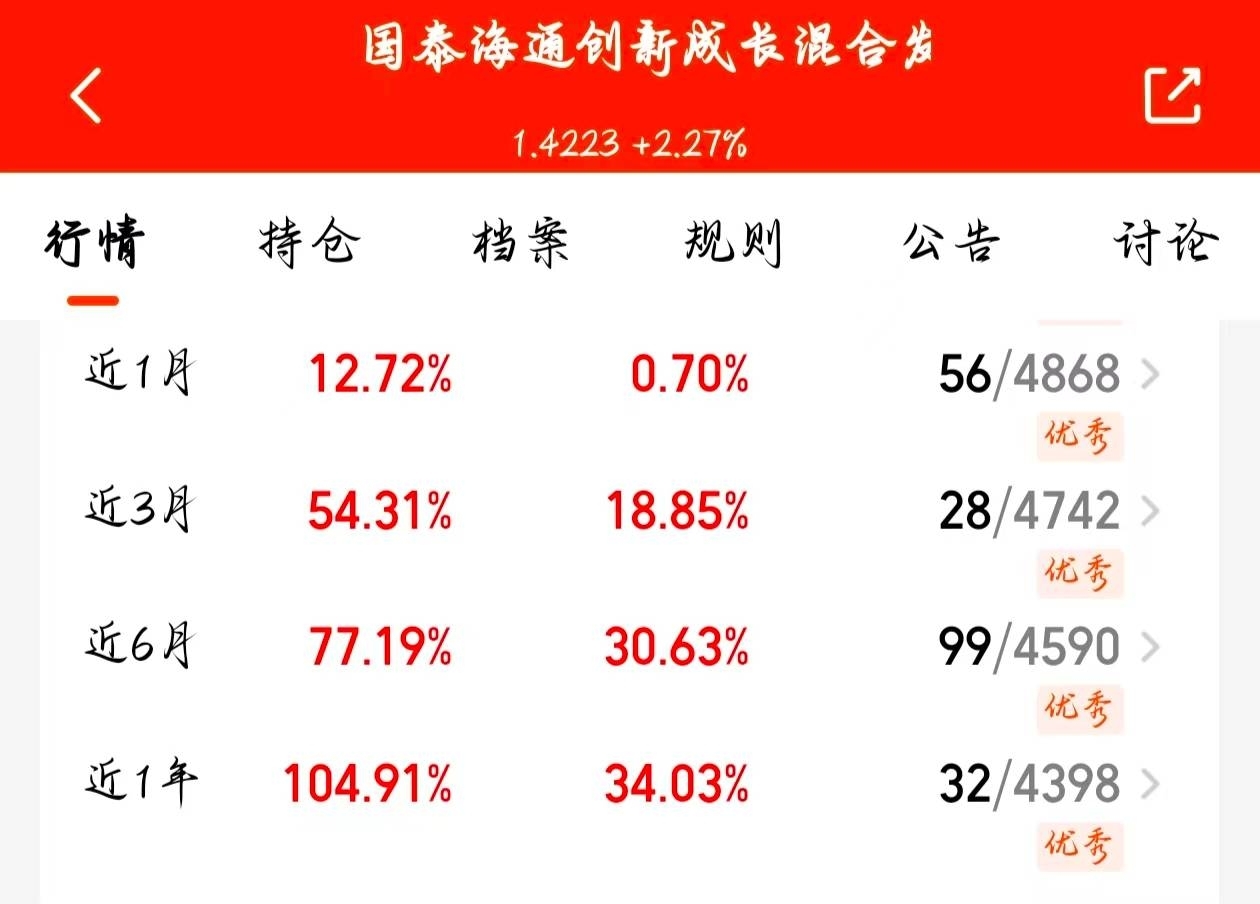 实打实的业绩说话,昨天涨2.27%,今年收益104%,回撤控制得好,确实靠谱。
