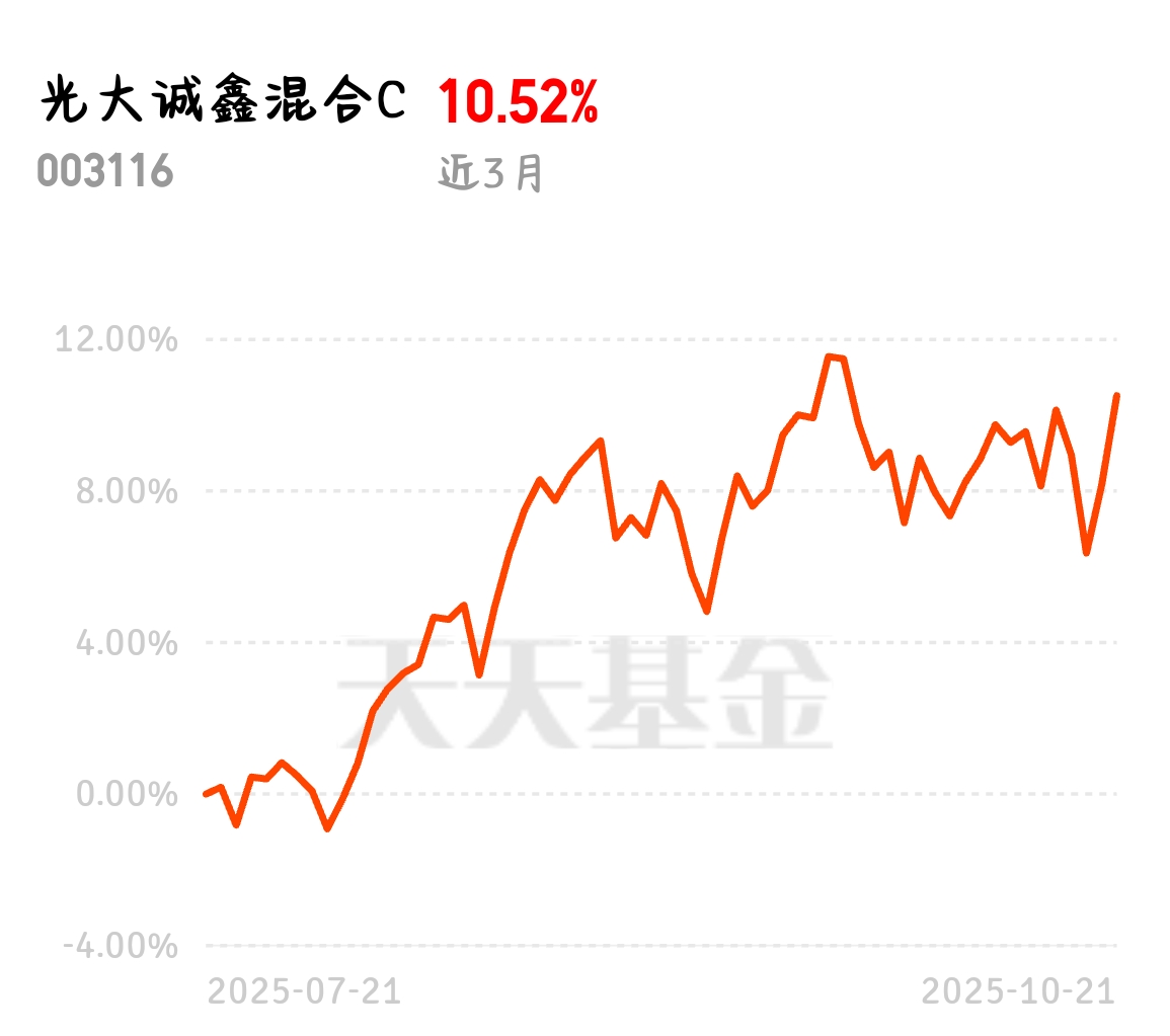 市场慢慢走稳,那些有明确布局的基金开始发力。光大诚鑫混合C近3个月涨10.52%,抓AI热点很有一套,别磨蹭了,加仓进去等着跟着赚。