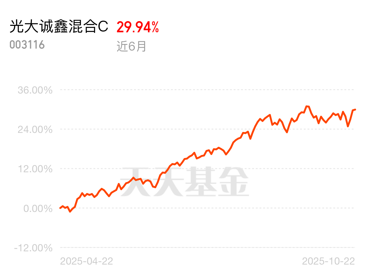 市场震荡期最考验基金实力,光大诚鑫混合C近6个月直接涨了29.94%,实力看得见