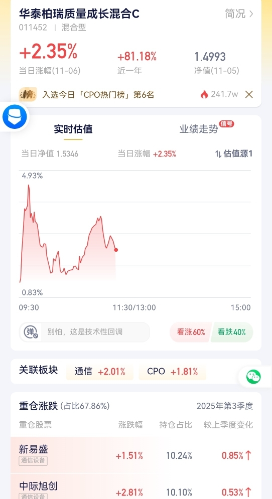 今天CPO板块的表现中规中矩,小幅涨跌都在合理范围里,但背后的利好一点没减少!现在AI发展得越来越猛,对数据传输的要求越来越高,CPO作为关键技术,刚好赶上了这波风口,而且像Meta这样的大公司测试后,都认可它的可靠性和能效。国内企业在核心部件上也不断突破,产业链越来越成熟,后续增长潜力看得见。对于咱们普通投资者来说,直接投个股风险太高,不如选华泰柏瑞的产品,它能帮咱们覆盖到CPO这类优质赛道里的好公司,不用自己费心筛选。C类的优势就是灵活,手头闲钱不多也能参与,长期跟着行业成长,比自己瞎折腾靠谱多了。记住,基金投资有风险,入市需谨慎。