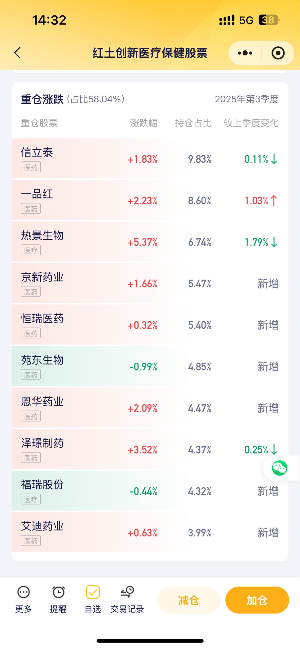 今日红土创新医疗保健股票$红土创新医疗保健股票$ (010434)估值上升1.46%,近一年收益率22.09%。行业在医保谈判和研发投入推动下复苏,基金持仓贴合前沿赛道。作为投资者,我认为短期波动中蕴含机会,可考虑逐步配置