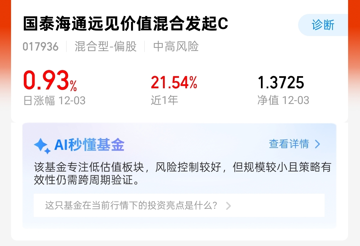 科技板块今天又挨揍,还好$国泰海通远见价值混合C$给力!0.93%的正收益稳稳托底,红利资产果然靠谱,分散投资猜对了