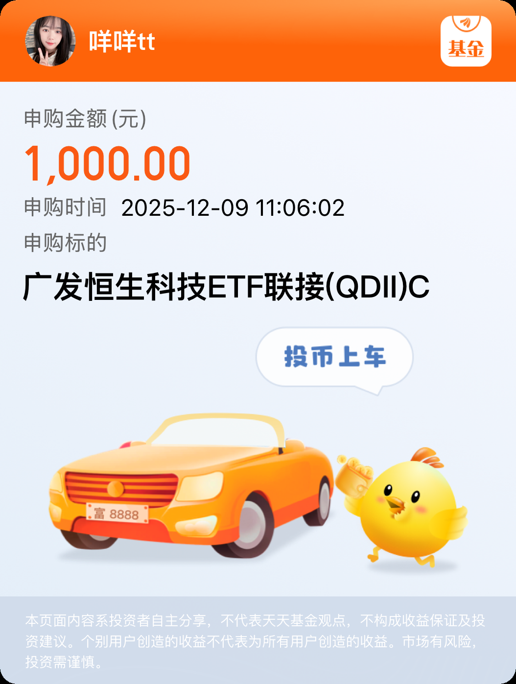 我加1000元$广发恒生科技ETF联接(QDII)C(OTCFUND|012805)$