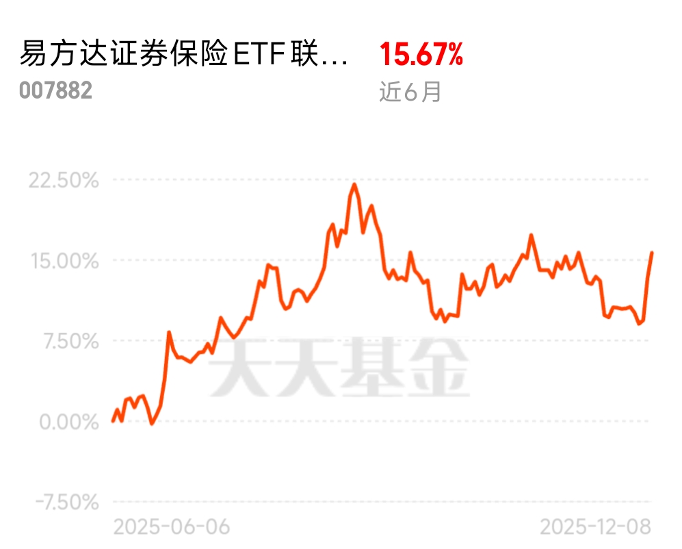 易方达证券保险 ETF 联接 C 太顶了!昨天 2.08% 大涨,近半年 15.67%,当下位置正合适,券商保险回暖趋势,我接着加仓,别犹豫!$易方达证券保险ETF联接C$