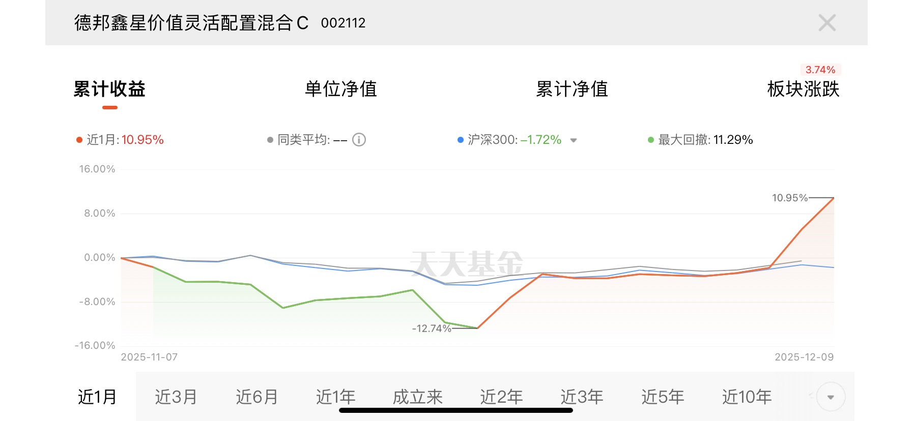 近期科技股震荡上行,新质生产力相关板块领涨,市场风险偏好回升。德邦鑫星价值灵活配置混合 C 近 1 个月 10.95%,今天 5.47% 的涨幅在科技里最好,没中途下车太明智,明天继续冲!
