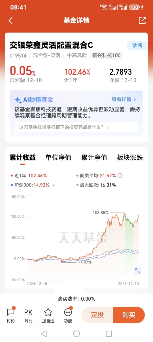 波动行情选主动管理混合基金,交银荣鑫历史业绩出众稳收益,配置超合适。