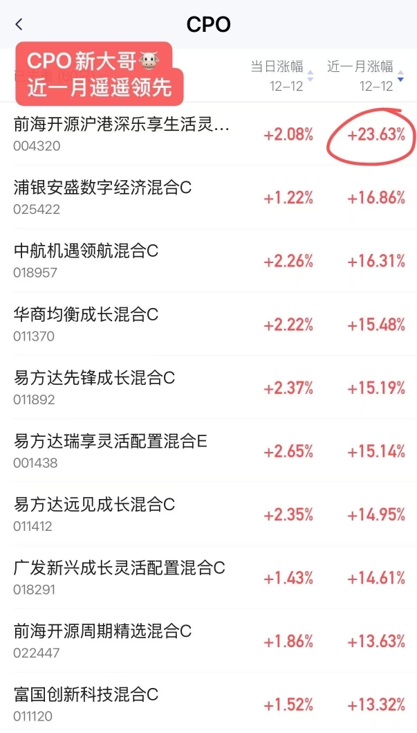 这就是CPO顶流的实力吗?前海开源乐享生活近一月涨+23%,直接干成老大。同样是