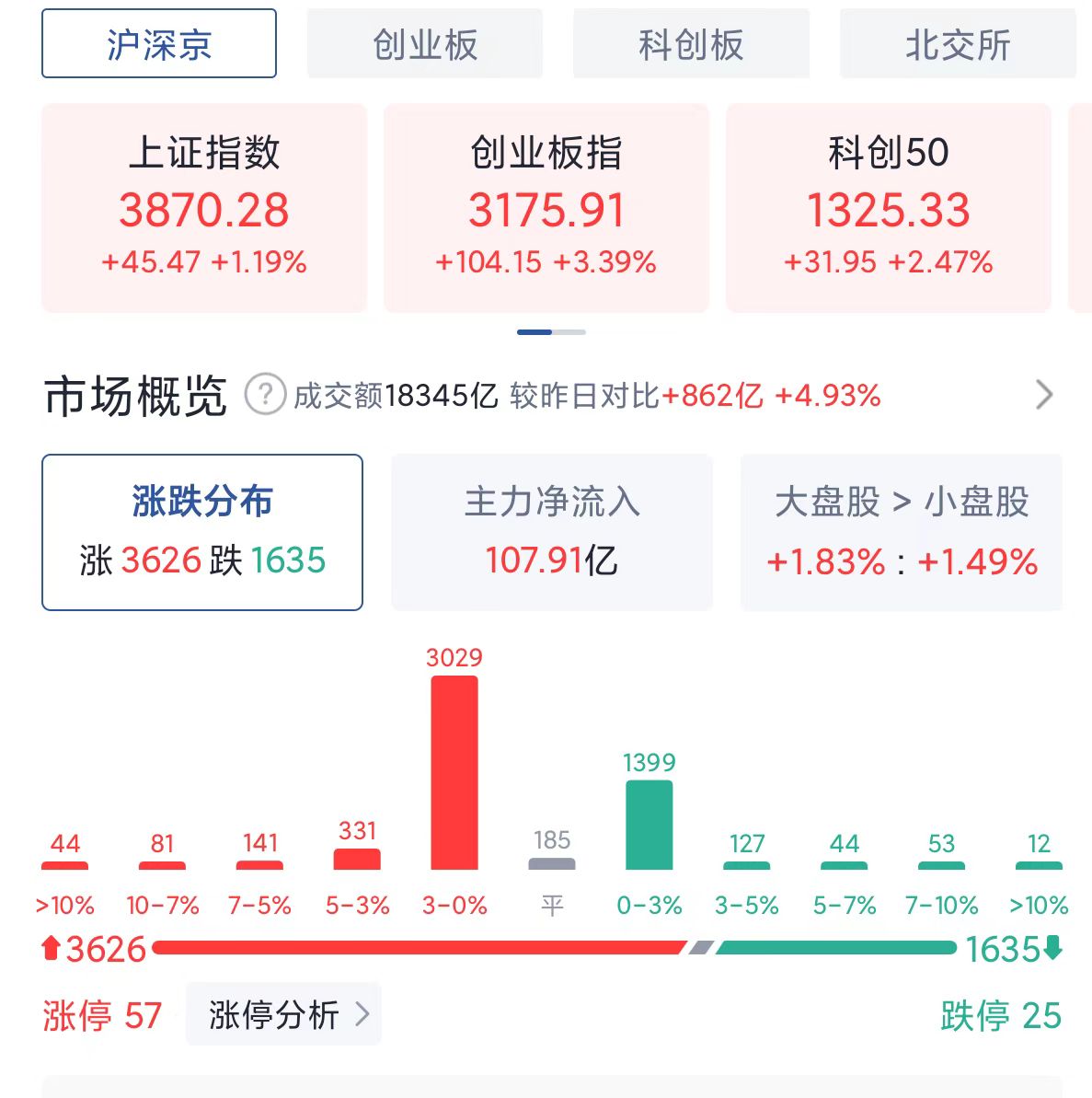 还记得昨天我念叨的不?往下空间很有限,现在就是波动底部,情绪越冰点,反弹越猛烈!牛市多震荡,这会儿低吸抄底才是聪明人玩法,扛住短期波动,才能蹲到起飞大肉!果不其然,午后上证指数暴涨1.19%,稳稳站上3870点;创业板更猛,直接飙3.39%冲上3175点,这波触底反弹,简直燃到爆炸!