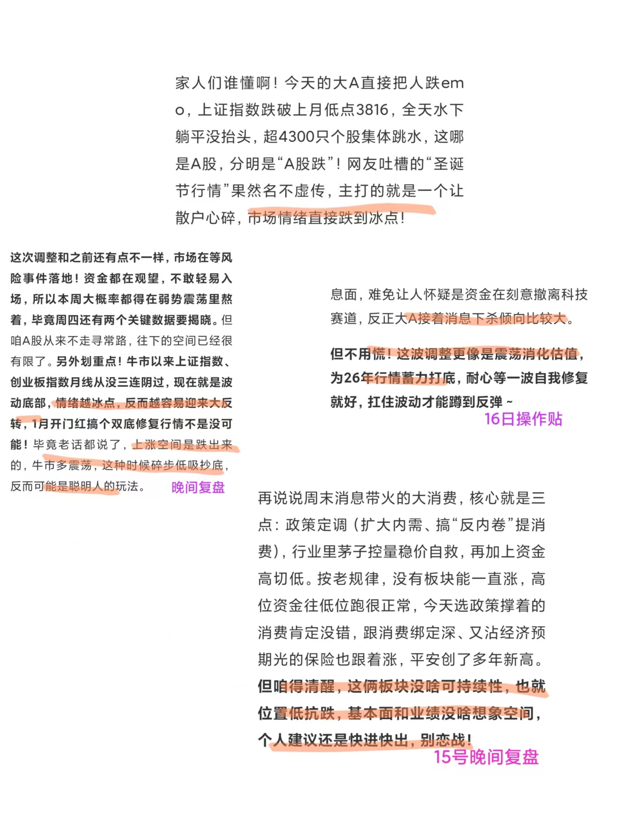 另外昨天就说了,大跌之后必有修复,现在就是震荡筑底黄金期,怕啥?现在又有神秘资金兜底,还有啥不放心的,虽然老美那边圣诞节行情可能有点小利空,但A股已经明牌向好,咱们躺平等企稳就完事儿,精准切换这种活儿,咱普通人真没必要强求!