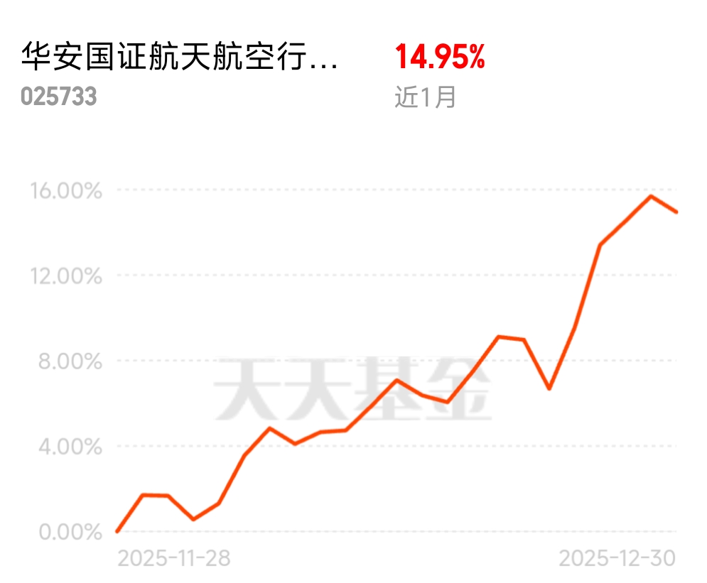 华安 $华安国证航天航空行业ETF发起式联接C$ 太给力!近月涨 14.95%,低空 + 大飞机 + 卫星,纯航天赛道,闭眼跟就对了