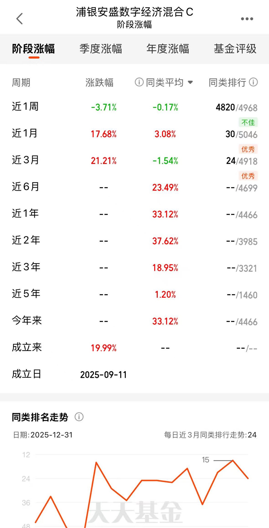 $浦银安盛数字经济混合C$ 近一月,三月都是TOP,热门的CPO中航、永赢都限大额了,这个冲的猛的新基还可以吃大肉