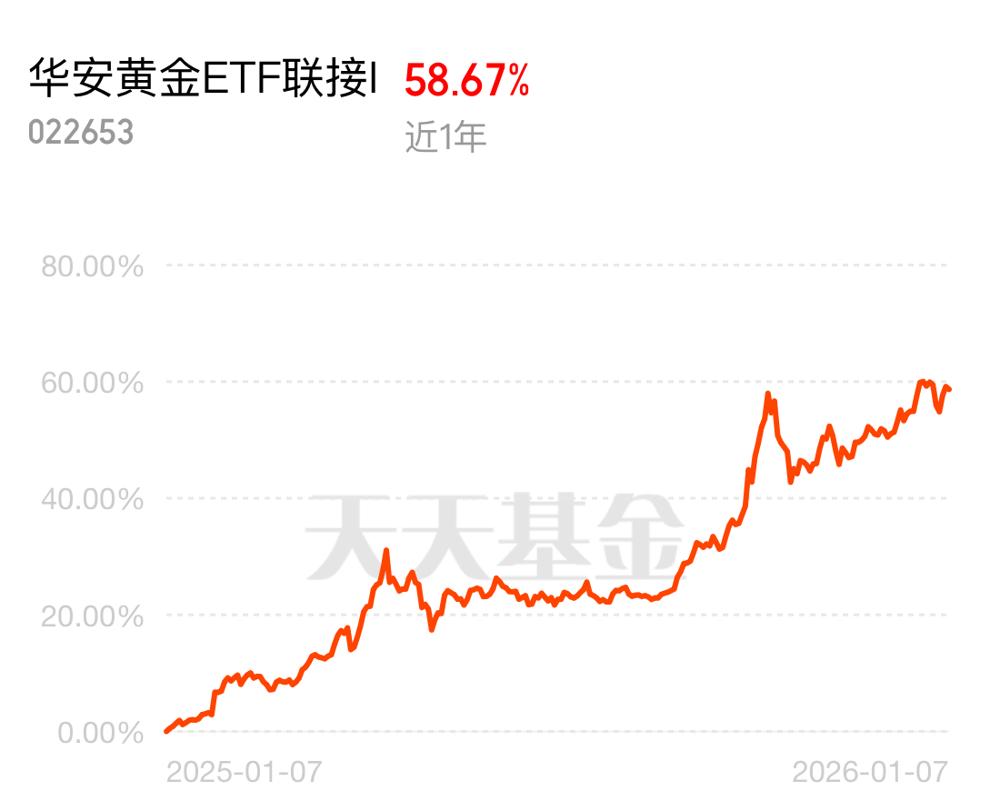 $华安黄金ETF联接I$近一年涨58.67%,亚洲规模最大,费率低到极致,7天免