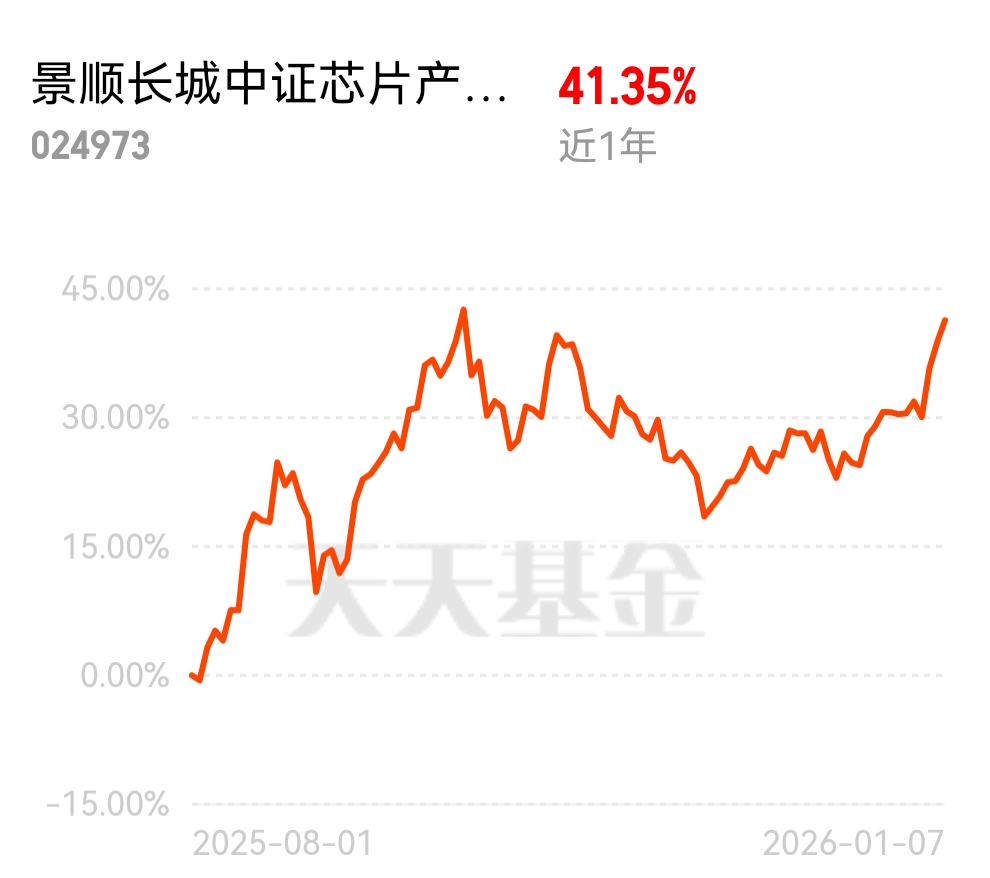 存储芯片产能倾斜高端产品,通用存储供应紧张,芯片半导体板块持续走强。科技仍是主线,核心发力点就在芯片。景顺长城中证芯片产业 ETF 联接 C 0 申购费,近一年涨超 41%,重仓龙头,近 1 月 12.58%,行情跟得靠谱。$景顺长城中证芯片产业ETF联接C$