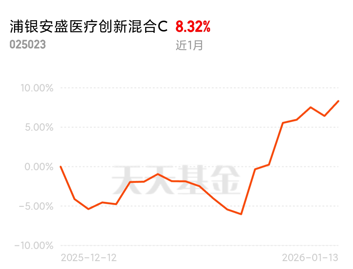 创新药风口正劲!浦银安盛医疗创新上周连涨5天,昨天涨1.77%,调整一天今天又大涨,趋势超猛$浦银安盛医疗创新混合C$