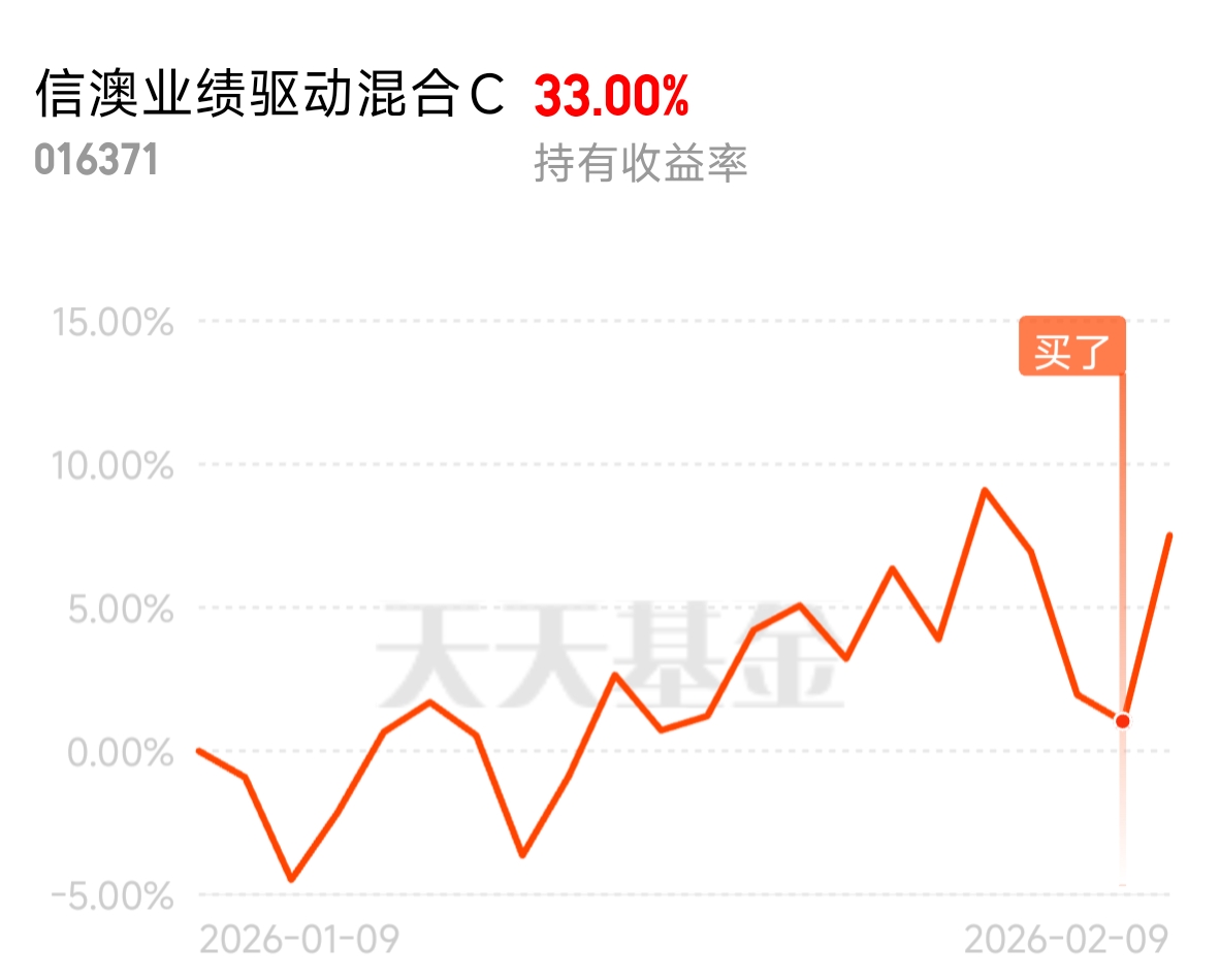 上周下跌时调了4w过来,不错,持有期间一直在观察,调仓灵活,波动虽大,高收益。适当持仓,波段操作,降低风险,留足底仓。@天天基金创作者中心 $信澳业绩驱动混合C$