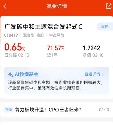 广发远见智选混合C今天还能涨1个多点,真的惊喜,同类板块就他是涨的,它在半导体设