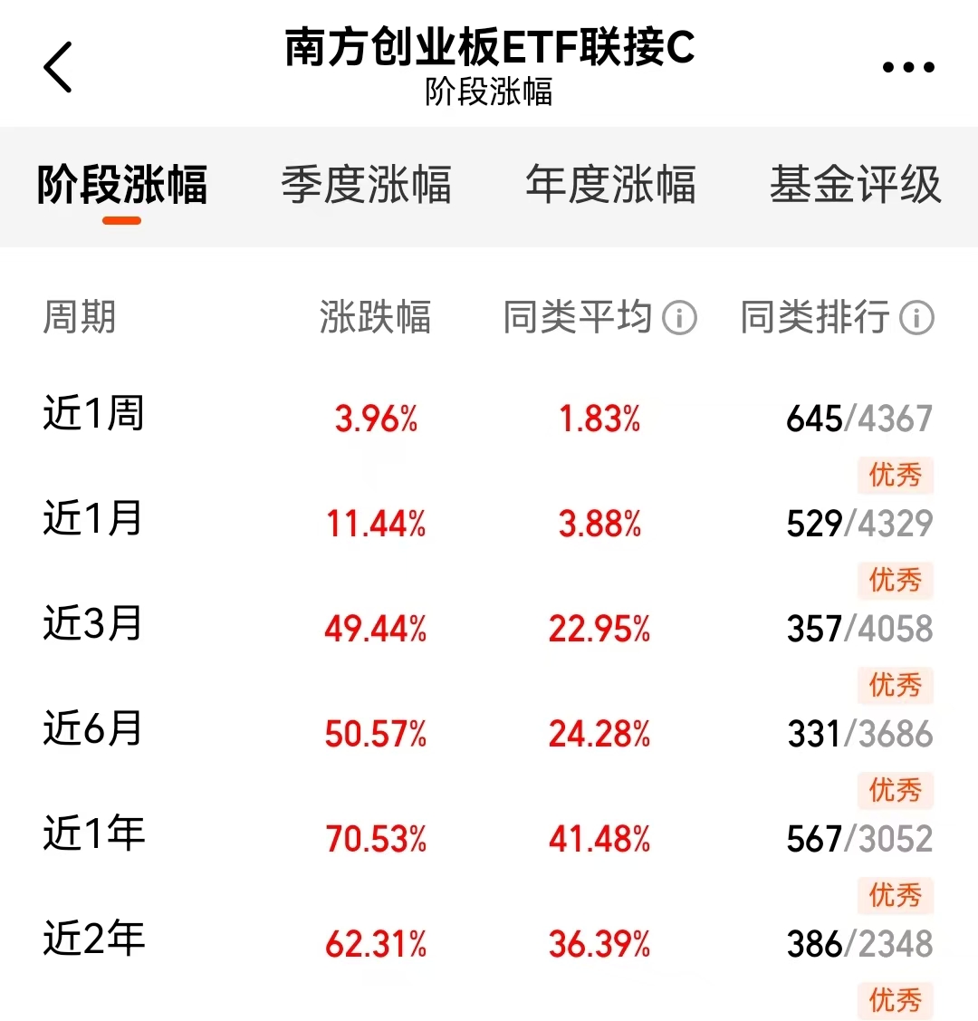 关注了一下基金的最新持仓,主要是通过投资创业板ETF来跟踪指数,所以底层资产就是指数那一篮子成分股。这种模式避免了基金经理个人判断的偏差,完全复制指数。$南方创业板ETF联接A$(002656)近期业绩表现强劲,近六个月涨幅超过48%,这背后是创业板指数的强劲上涨。对于没有太多精力去研究市场但又不想错过机会的普通人,这类基金提供了不错的参与渠道。#牛市旗手回归?券商板块异动拉升#
