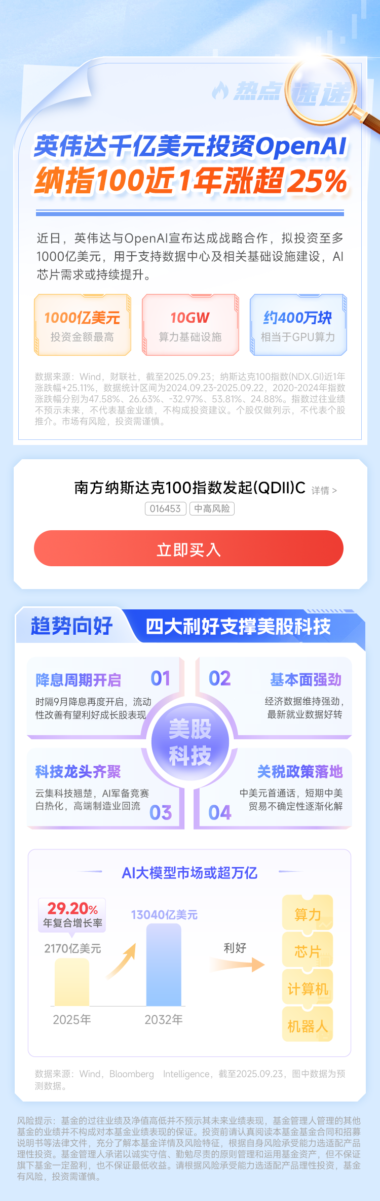 英伟达千亿美元投资Open AI,纳指100近一年涨超25%