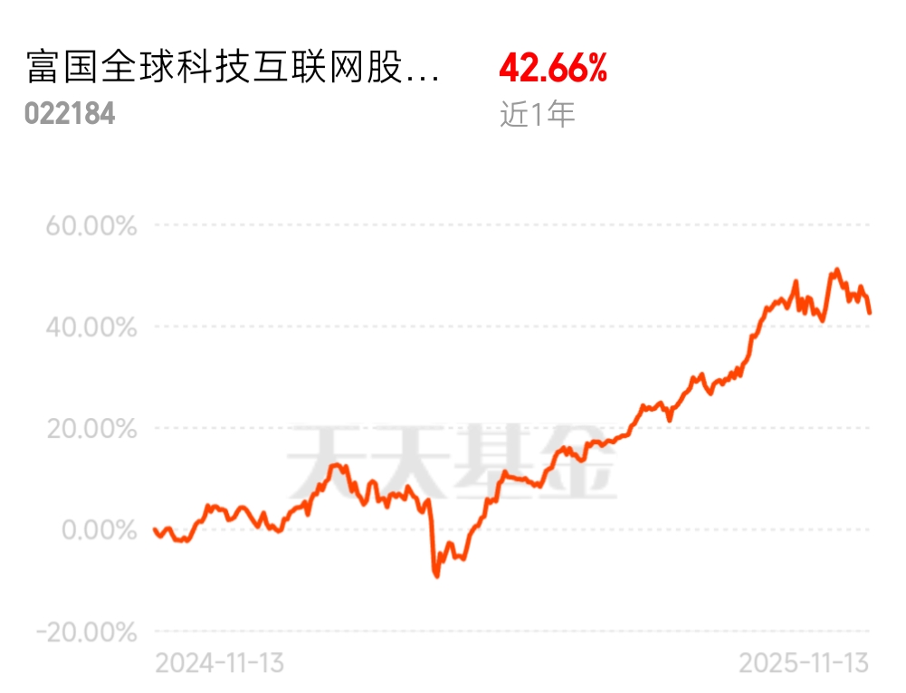 持仓南方纳斯达克100A,也配了点富国全球科技互联网C它主投全球科技成长,前十大主投里有谷歌、英伟达、台积电这些硬核公司,近6个月涨了30%,跑赢多数同类;关键是现在纳指相关产品不少都限购了,这只还能买。