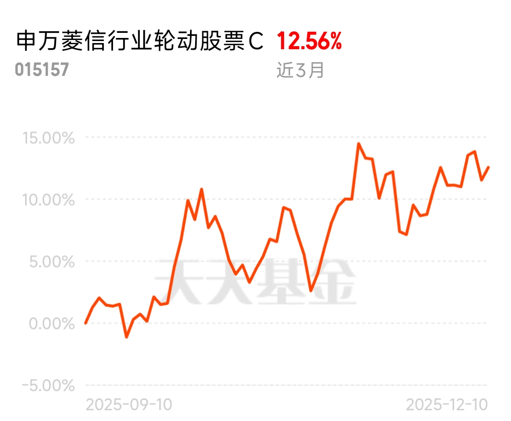看到没?美联储降息后有色板块彻底爆发,今天领涨全场!$申万菱信行业轮动股票C$ 重仓紫金矿业等龙头,今日净值涨快 2 个点还在往上走,近 3 个月涨 12.56%,夏普比率亮眼,这基值得蹲!