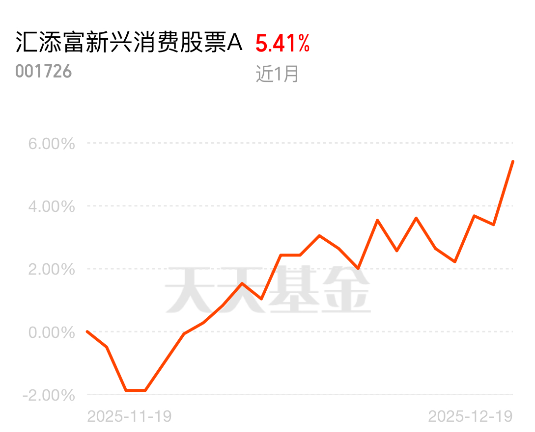智能家电、直播购物成日常,新消费业态越来越火。汇添富新兴消费股票A近1个月涨5.
