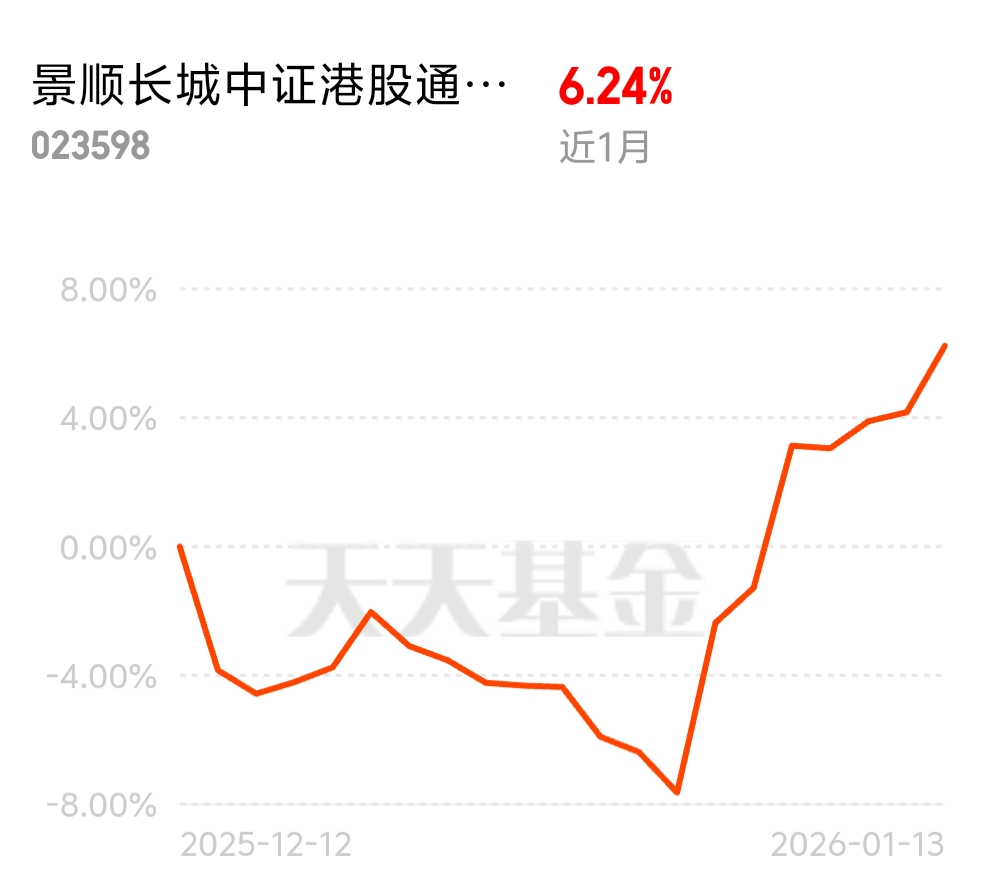 市场热捧港股创新药,4 连涨 + 开年 9 天 8 涨,17% 涨幅领跑全场。景顺长城中证港股通创新药 ETF 联接 C 近 1 月 6.24%,估值没被炒高仍低位,7 免福利加持,想抓短线机会的可以冲。$景顺长城中证港股通创新药ETF联接C$
