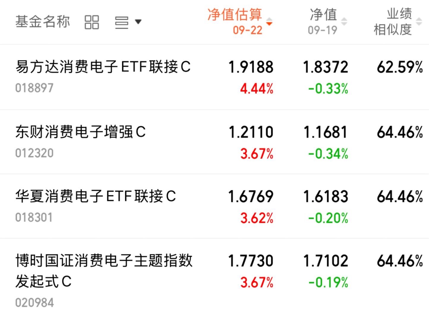 消费电子板块今日涨势猛,中证指数比国证好,加仓冲$易方达消费电子ETF联接C$