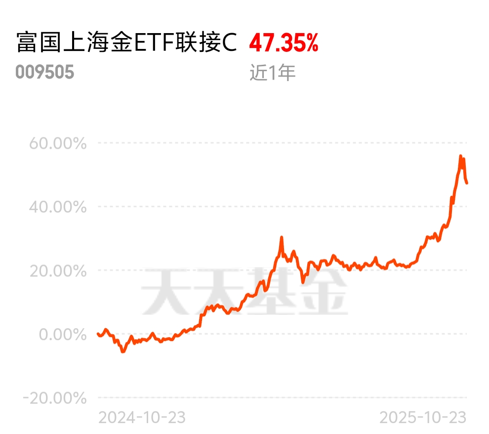 买了南方纳斯达克100的同时,我也配了点富国上海金ETF联接C黄金和科技一个稳一个冲,搭配着心里不慌。老将掌舵10年,过去一年超63%的周都是红的,拿得住!