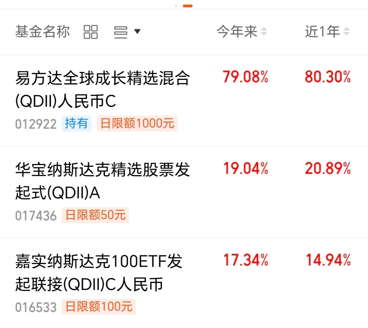 今日大盘行情稳定上涨,个股涨幅高达3300家,整体来看回暖之意明显,而港股、美股却出现小幅分化,可见还需均衡布局持仓,其中$易方达全球成长精选混合(QDII)人民币C$ 投资策略以全球科技为主,近一年涨幅高达80.3%,可见基金经理对全球市场都有着敏锐的布局,从而获取超额收益显著,我觉得科技长期行情还未走完,海内外都有很大机会,我也准备上车了!