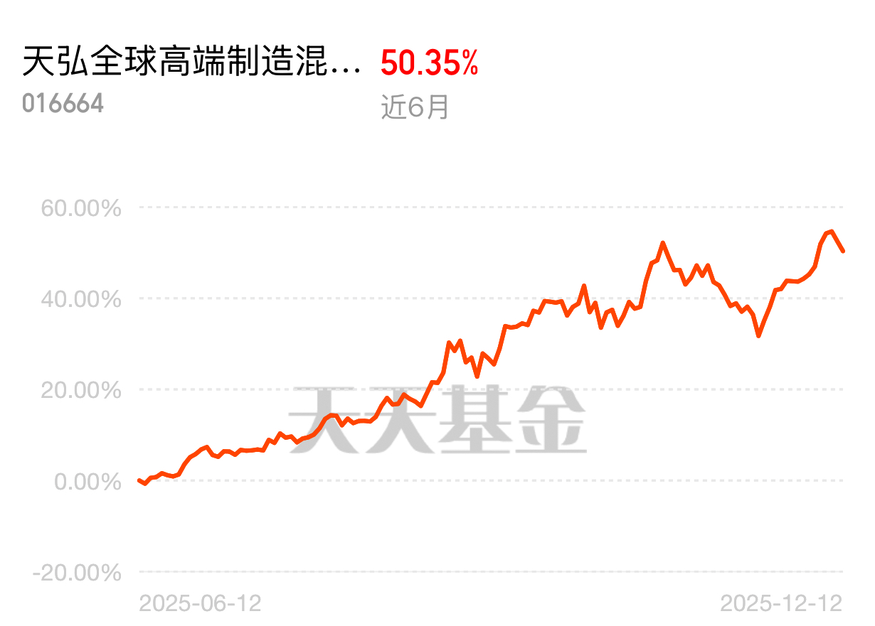 $天弘全球高端制造混合(QDII)A$近半年业绩50多了,目前额度充足~