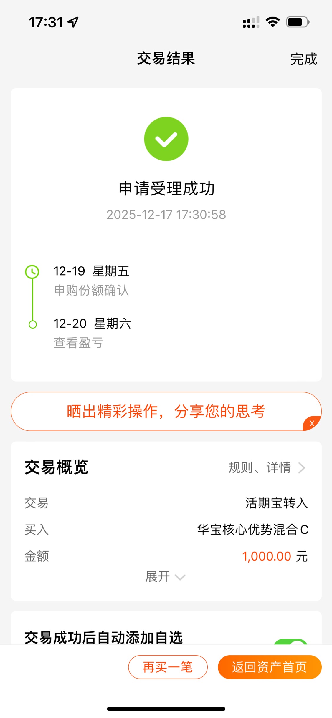 在博取收益方面,$华宝核心优势混合C$ 今年内收获超106个点了,这基超额收益明显,看好大科技,我也加仓啦
