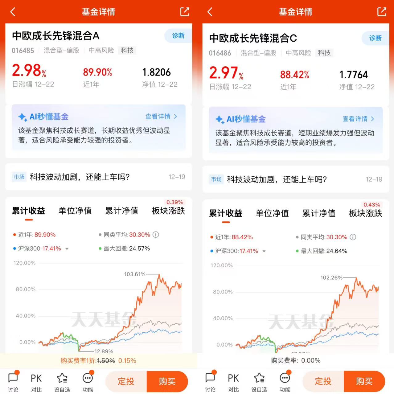 毕竟在我看来,基金投资的成绩既是基金经理个人卓越投资利能力的充分体验,也是基金公司综合实力的有力体现。而我对中欧基金是非常熟悉的,可以说是老朋友了。我大概是在2006年就开始接触基金,虽然不能说是国内最早的公募基金参与者,但是也算得上是较早的基民,投资经历已经有将近二十年时间,几乎算是经历了大半个国内公募基金发展史。我最开始是通过银行基金超市的代销渠道和基金公司的直营渠道投资基金。在2014年接触到了天天基金网后,就被天天基金网的便捷与折扣所吸引,就把其他渠道的基金都转入到天天基金网。