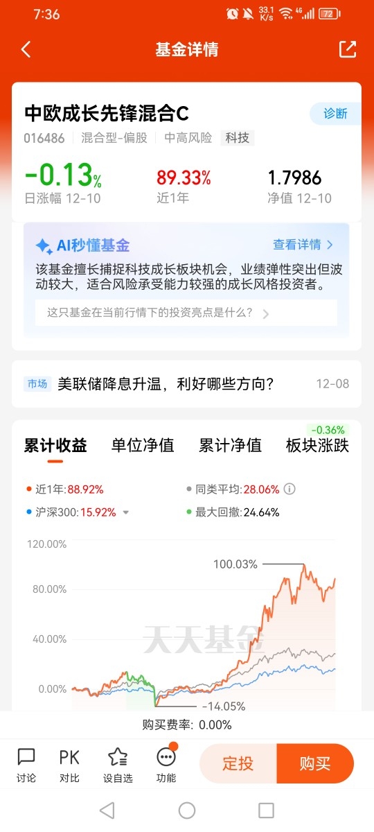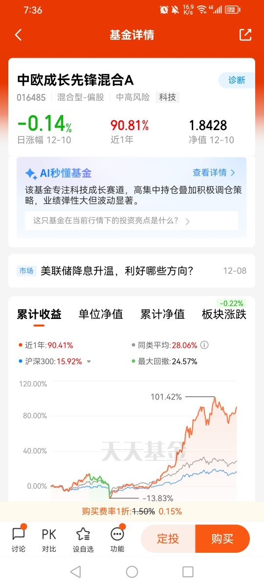看好科技成长赛道,坚定配置$中欧成长先锋混合C$!