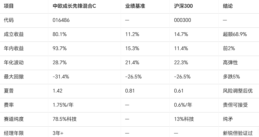 科技成长不是“稳稳的幸福”,而是“过山车带弹簧”,跌得深也弹得高。中欧成长先锋混合C用3年时间证明:只要景气度在,估值贵也能被盈利碾平;一旦景气度熄火,-30%回撤说来就来。你能承受波动,它就给你超额;承受不了,就去红利低波报到。愿各位2026年都能把科技真正落袋,别坐过山车只买张站票。