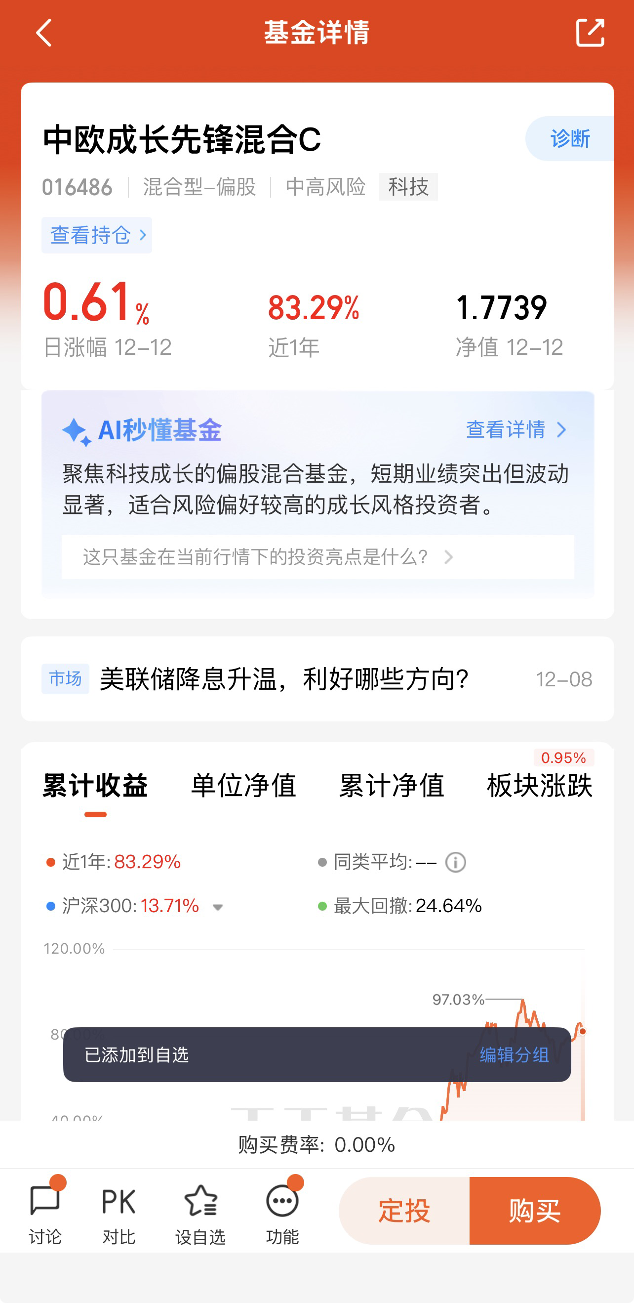 骑牛看熊持有并看好中欧成长先锋混合C(016486)的投资亮点,原因如下: