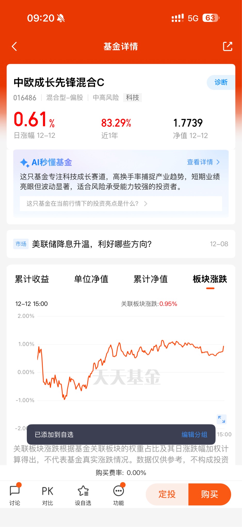 最初关注这只基金,源于对中欧基金投研实力的信任,以及基金经理“精选硬核成长股”的投资理念。不同于市场上有些盲目追热点的成长基金,中欧成长先锋混合C的持仓逻辑格外清晰——聚焦科技创新、高端制造、消费升级三大核心赛道,筛选具备技术壁垒、业绩增长确定性强、估值合理的先锋企业。比如在科技创新领域,布局了人工智能、半导体等景气度高的细分赛道;在高端制造板块,重点关注新能源装备、精密制造等领域的优质标的,既保证了成长空间,又通过行业分散降低了单一赛道波动的风险。