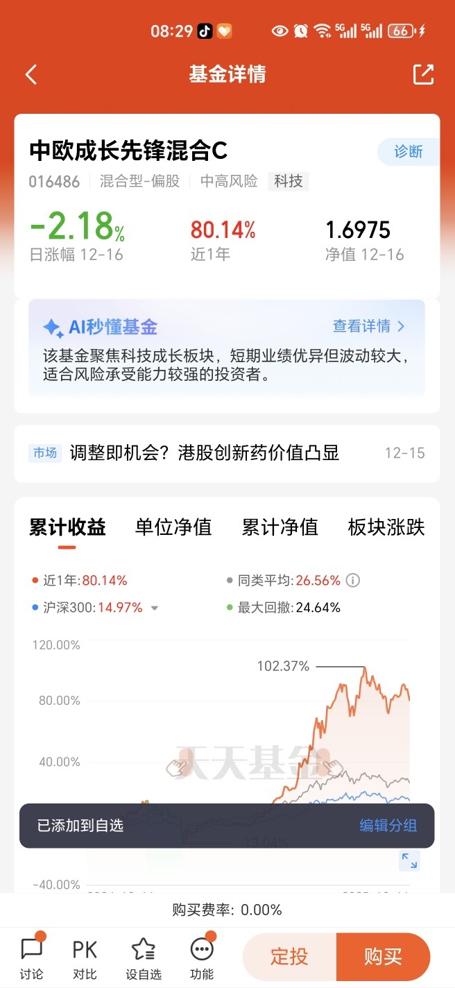 #基金经理刘伟伟来调研#相较于同类偏股混合型基金,中欧成长先锋混合C(016486)的核心优势集中在业绩表现、持仓配置、费率设计三方面。