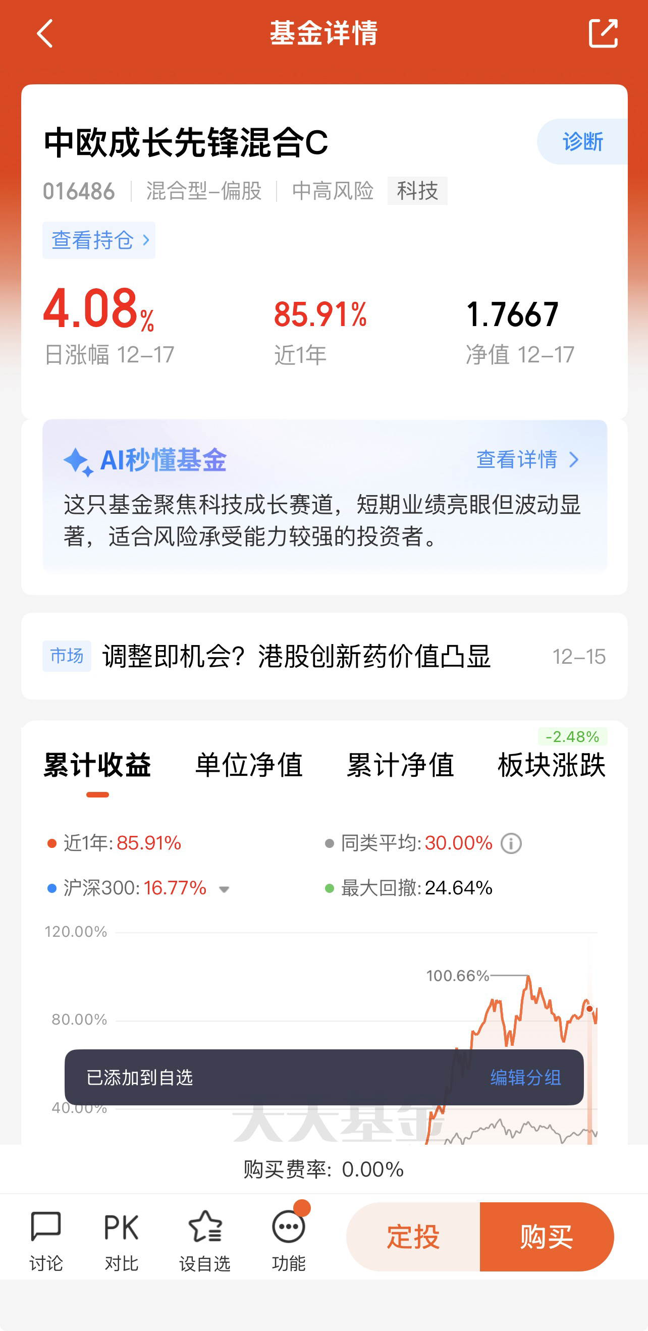 中欧成长先锋混合C(016486)把2026年最锋利的AI算力、储能、高端制造机会打包,同时通过港股、反转行业及衍生品对冲降低波动,是“高景气成长”赛道里少有的高夏普工具。若你是长期投资者,认可科技、新能源赛道的未来发展,且能接受中风险及短期波动,中欧中欧成长先锋混合C(016486)有较高的配置价值。