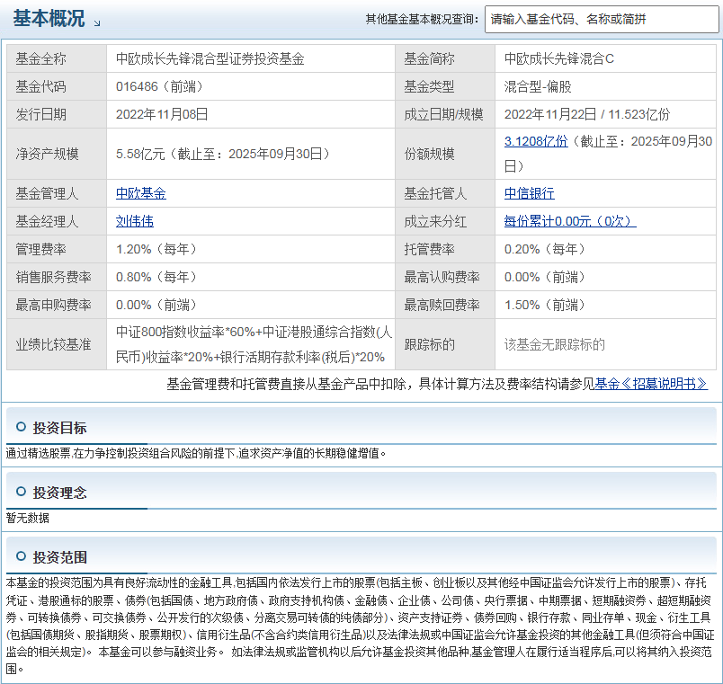 $中欧成长先锋混合C$ 该基金不仅投资A股,还可通过港股通机制投资港股。港股市场有一些独特的上市公司,具有不同的行业属性和发展特点,通过投资港股可以进一步分散投资风险,同时也能捕捉到不同市场的投资机会。就好比把鸡蛋放在不同的篮子里,降低了单一市场波动对基金的影响。