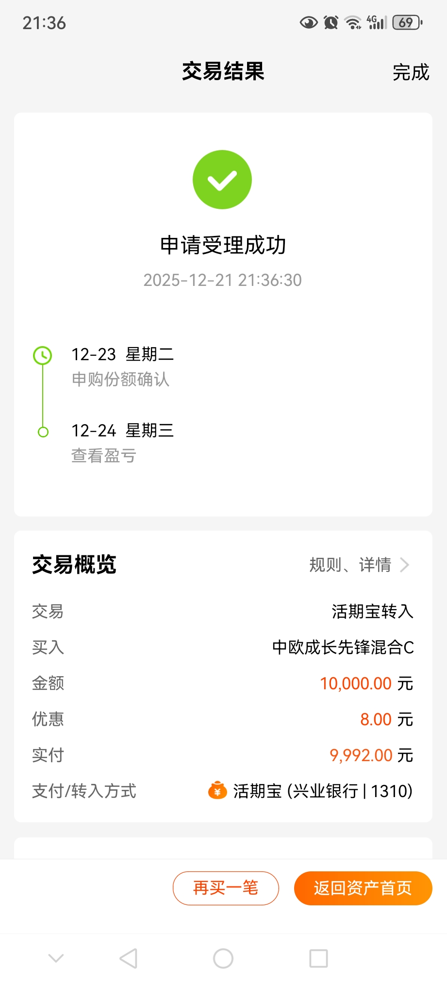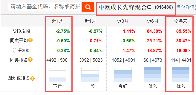 调研活动结束,我确认中欧成长先锋混合C(016486)是一只主投科技成长的王牌基金,绝对不容错过!今年以来,收益率85.55%,表现相当惊艳。最近一周的排名却靠后,超着近期小有调整的大好机会,今天我先买入10000元,后续若遇调整,则继续加仓!