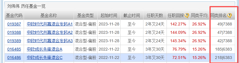 上图的数据来自天天基金网,截止2025年12月21日,刘伟伟管理的两只基金,在职期间的收益率,是同类平均的5倍,同类排名都是遥遥领先。