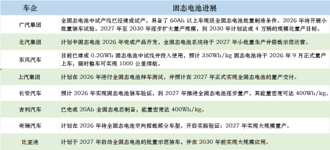 国内方面,宁德时代、国轩高科推进装车路试,广汽集团建成国内首条大容量全固态电池产线,硫化物电解质技术日趋成熟;国外方面,丰田宣布将全固态电池量产时间提前至2027年。