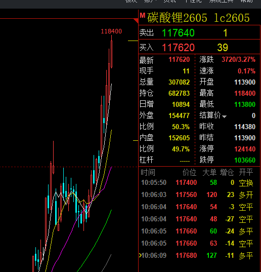 最近储能的上游碳酸锂上涨很猛,如主力合约2605,短时间内从11月初上涨到高峰118400,涨幅高达44%,