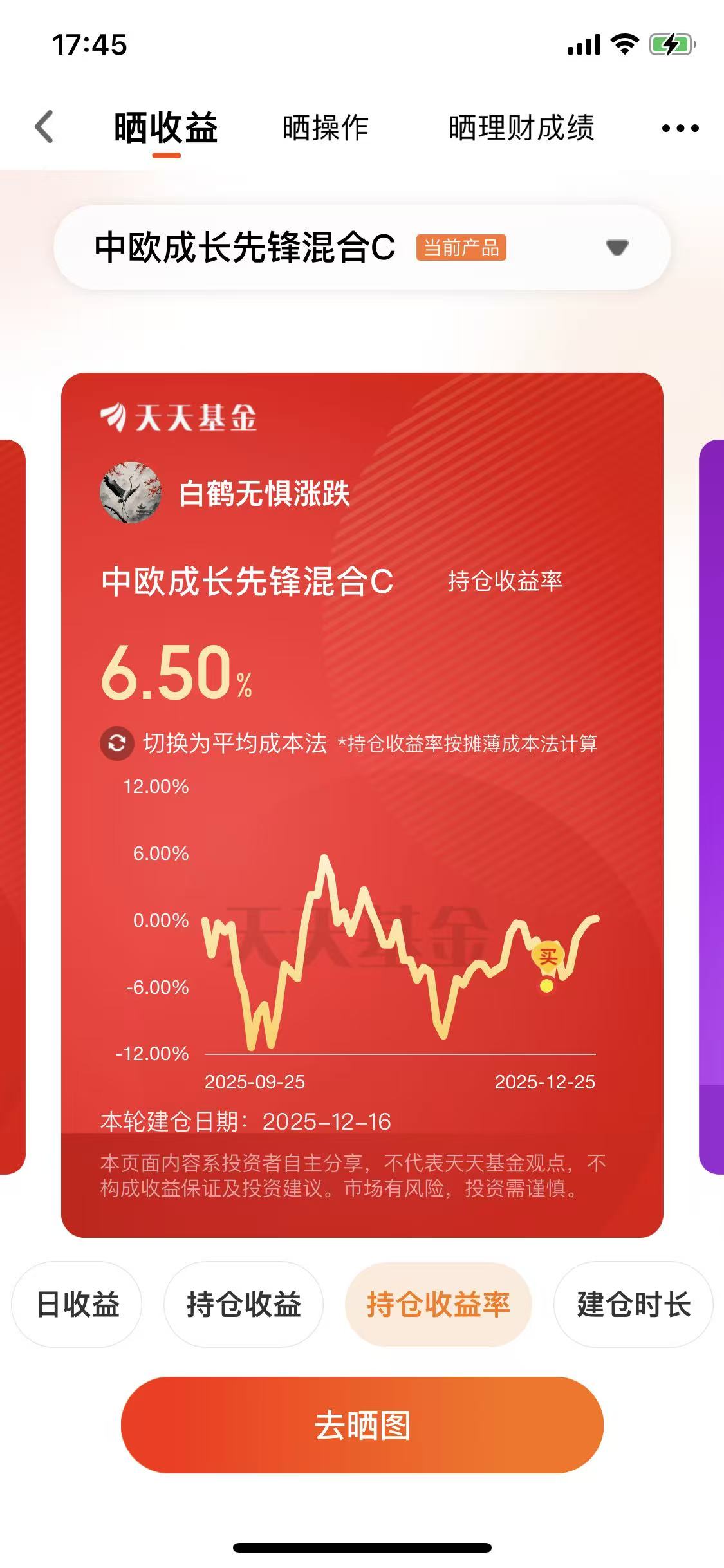 再过几天就是2026年了,感觉这段时间A股又开始震荡起来了,尤其是此前一路走高的科技板块,忽上忽下的波动确实容易让人陷入纠结。不过于我而言,这也算是挺好的机会了,白鹤君我也趁着回调买入了中欧成长先锋混合C(016486),目前是小赚的状态。或许有人觉得当前点位还是有些高,想再等等看,可我真的不希望机会白白溜走。特别是对于TMT和新能源这两个正加速崛起的赛道来说,短暂的回调恰恰给了更多人上车的契机。