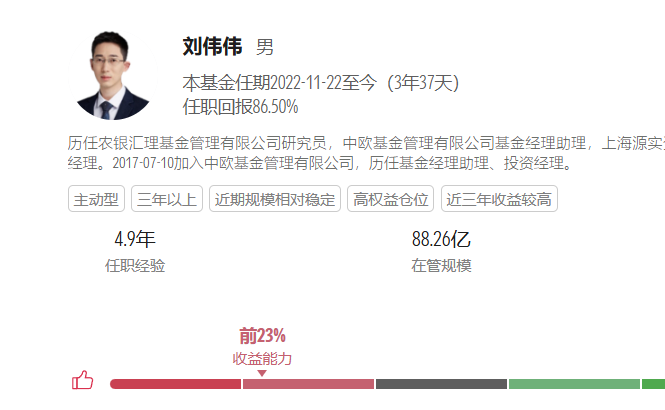 从核心一、核心二,天咨已经为大家充分展示了刘伟伟经理的从基金概况可以看出,该基金成立于2022.11.22日。