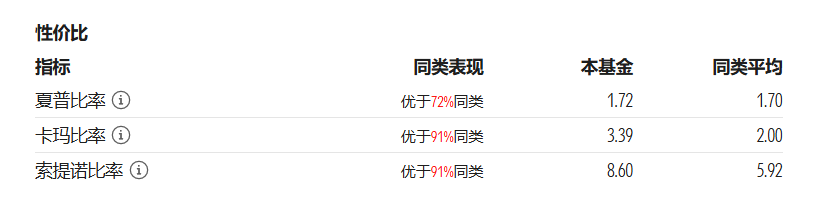 从性价比指标来看,该基金的三项指标均优于同类平均水平。