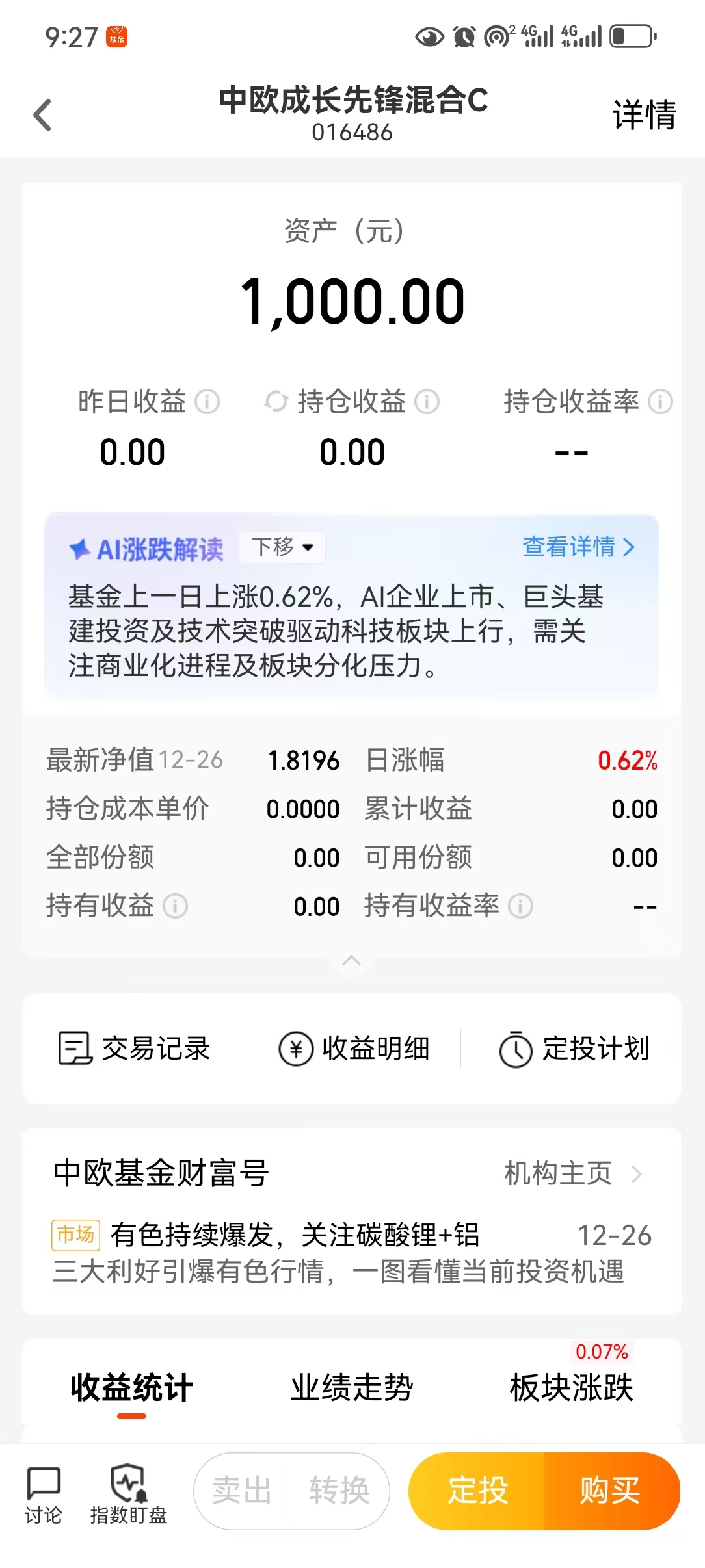 核心三:中欧成长先锋混合C(016486)产品介绍及深度评测。$中欧成长先锋混合C(OTCFUND|016486)$