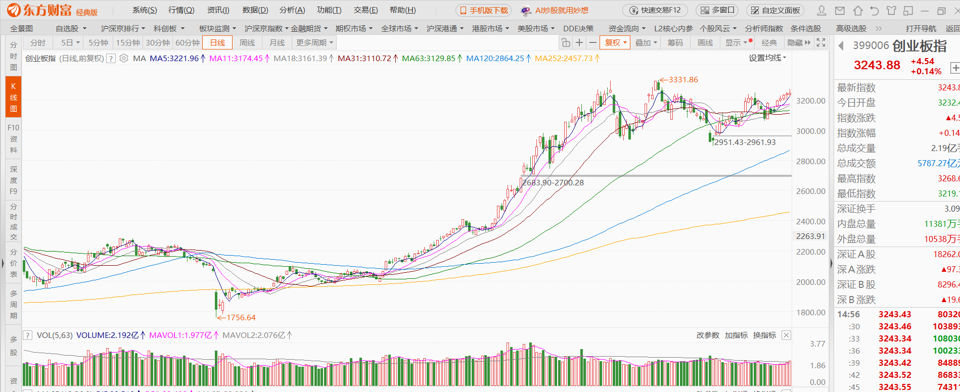 为啥今年这两次都没能稳稳站上3300点?关键得看这波行情的启动点:今年6月创业板还在2000点左右徘徊,之后一路冲到3000点,涨幅超50%,中间别说像样的调整了,连高位横盘震荡的机会都没给。所以现在高位调整一段时间反而是好事,等调整到位,别说站稳3300点,未来突破2015年的高点都是极有可能。