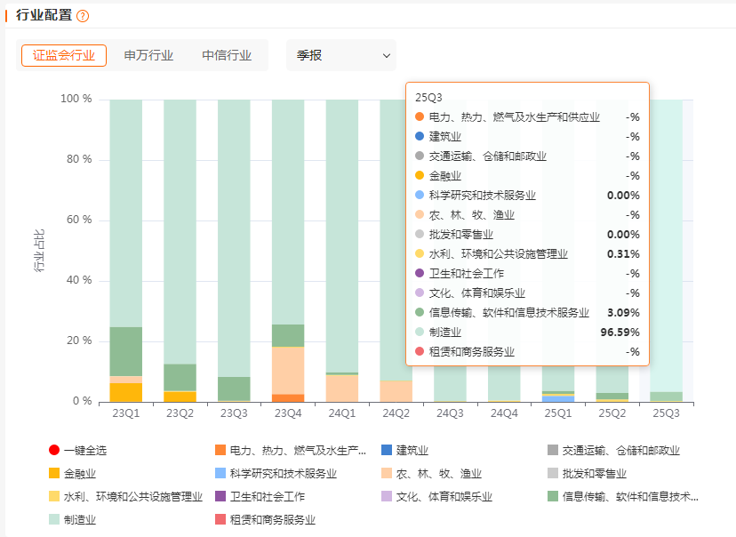 刘伟伟的投资策略具有三个鲜明特点:一是”不赌单一赛道”,通过多元化均衡配置平滑组合波动;二是”高集中度配置”,聚焦少数高景气细分领域;三是”动态调整持仓”,根据行业景气度变化及时调仓,如2025年三季度大幅加仓算力、储能,减仓汽车和消费。